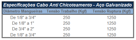 galvanizado. Esses cabos são utilizados para inibir o chicoteamento de